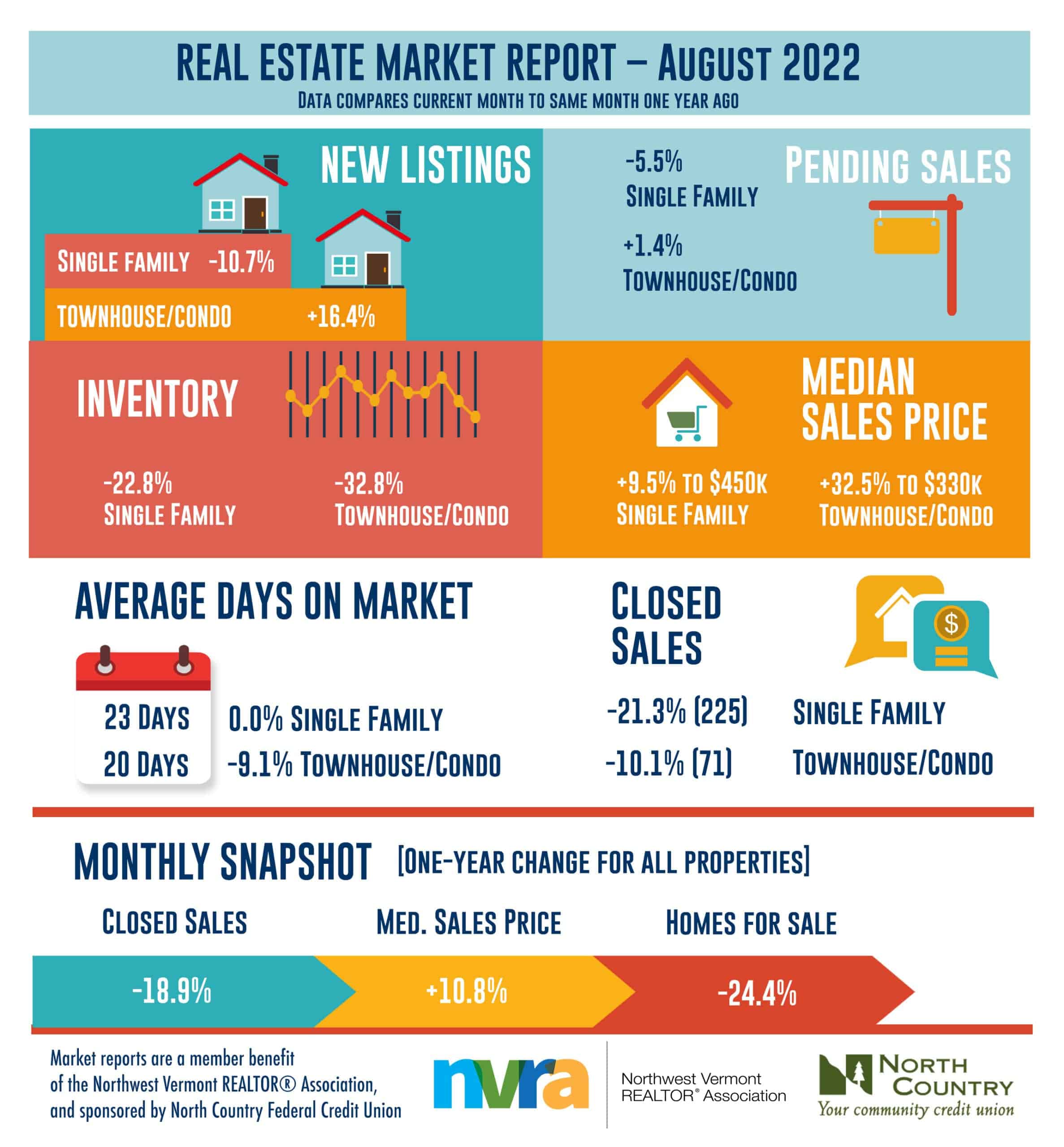 The Median Sales Price was up 9.5 percent to $450,000 for single-family homes and 32.5 percent to $330,000 for townhouse-condo properties. Days on Market remained flat for single-family homes but decreased 9.1 percent for townhouse- condo properties. Months Supply of Inventory decreased 5.9 percent for single- family homes and 30.0 percent for townhouse-condo properties.
